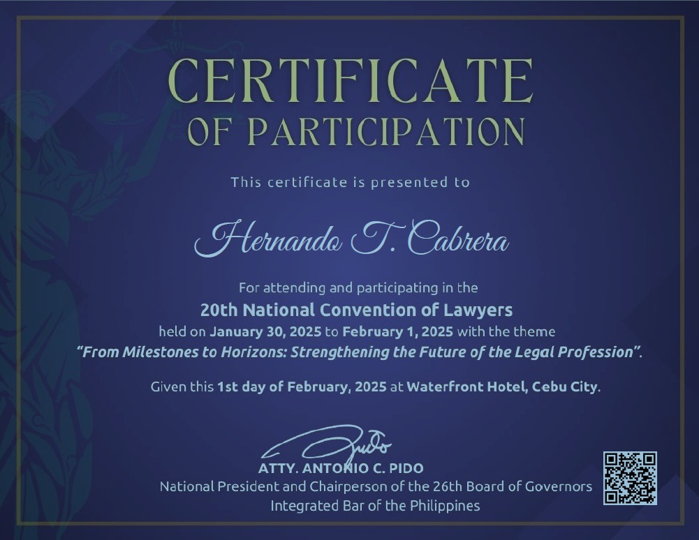 Private Legal Practitioner (IBP Roll No. 38563 – 1993)