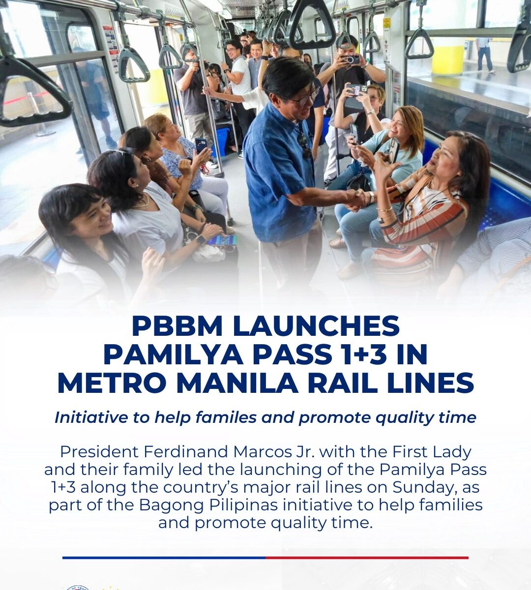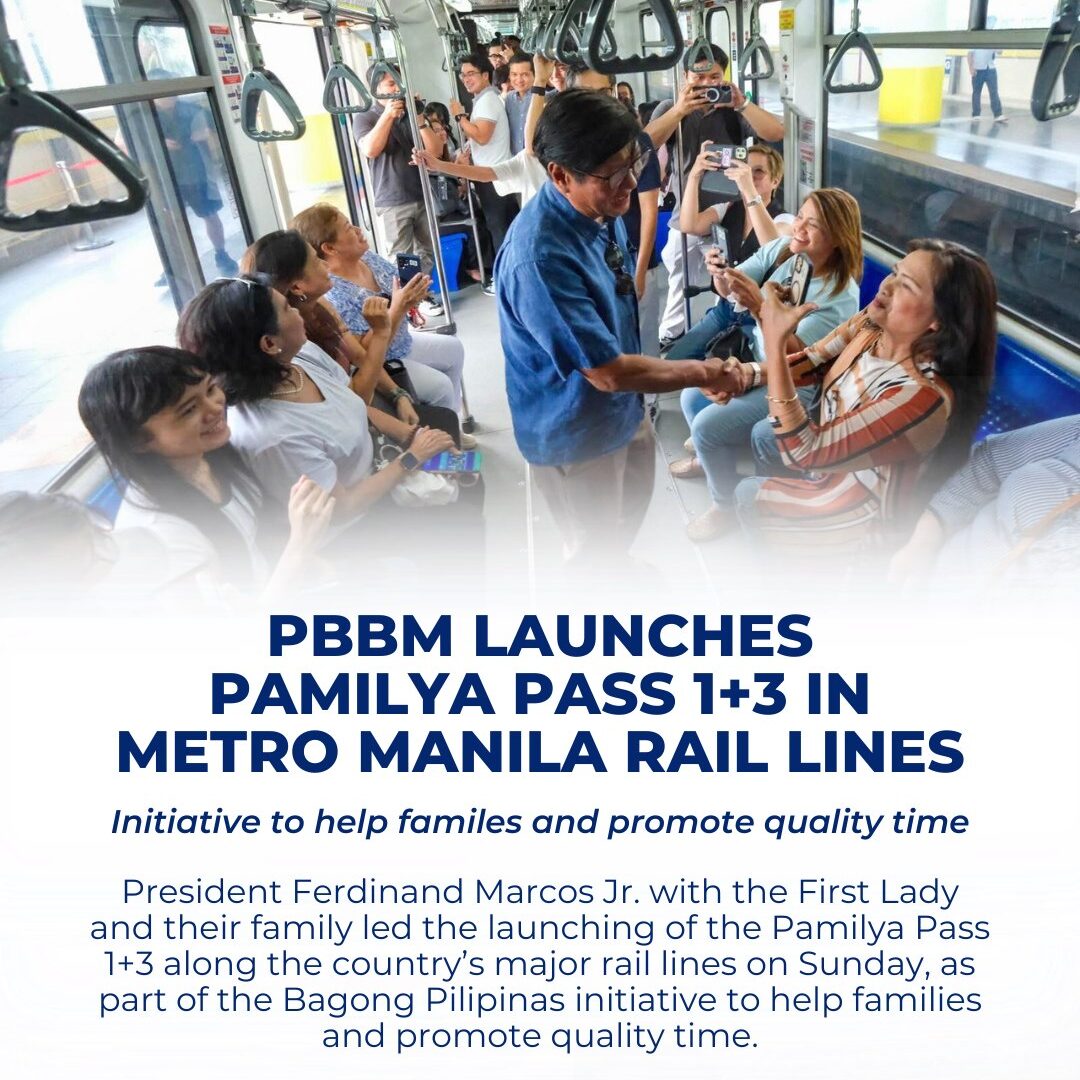 President Marcos said the Pamilya Pass 1+3 in all Metro Manila rail lines will allow families to spend less for transport and enjoy their time together every Sunday.