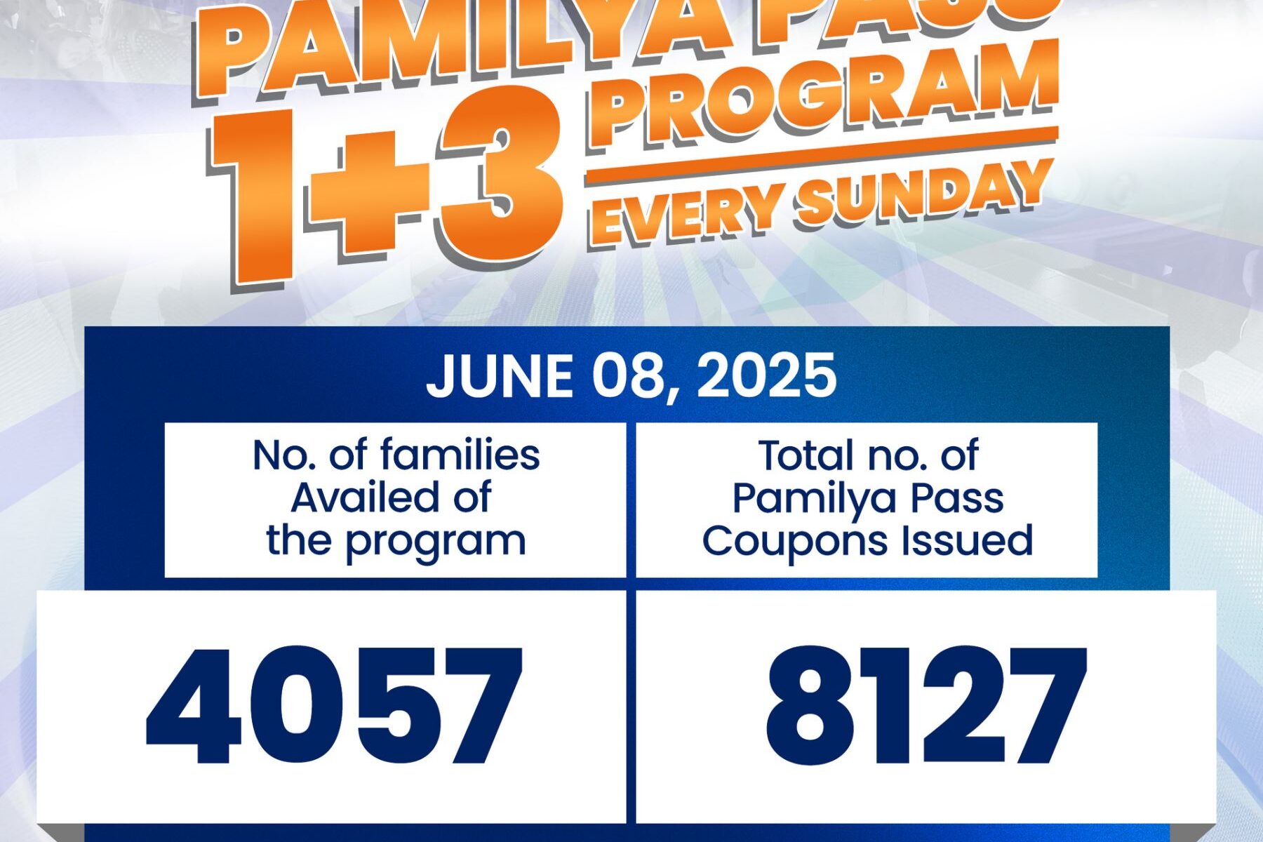 Mas mataas ito kumpara sa noong June 1, kung saan 722 pamilya ang nag-avail ng Pamilya Pass at 1,667 ang nabigyan ng Pamilya Pass Coupons.