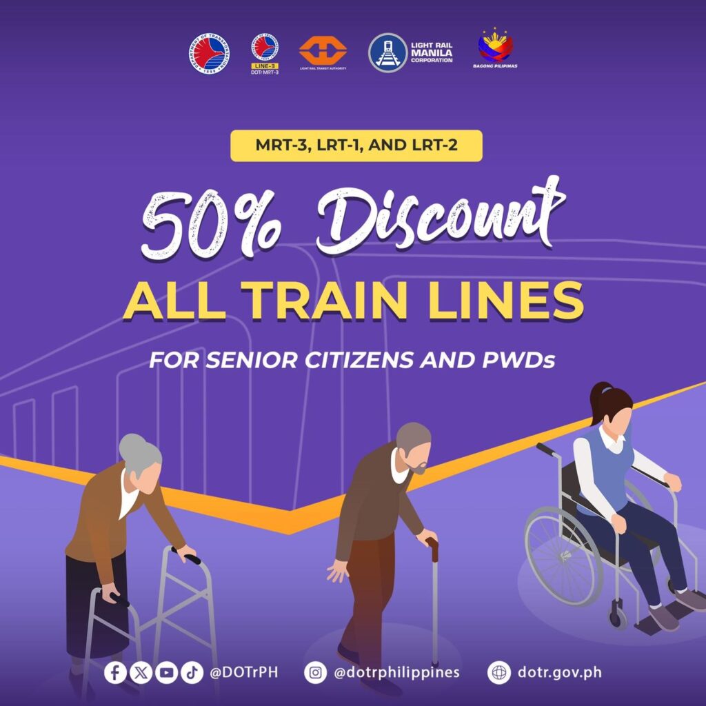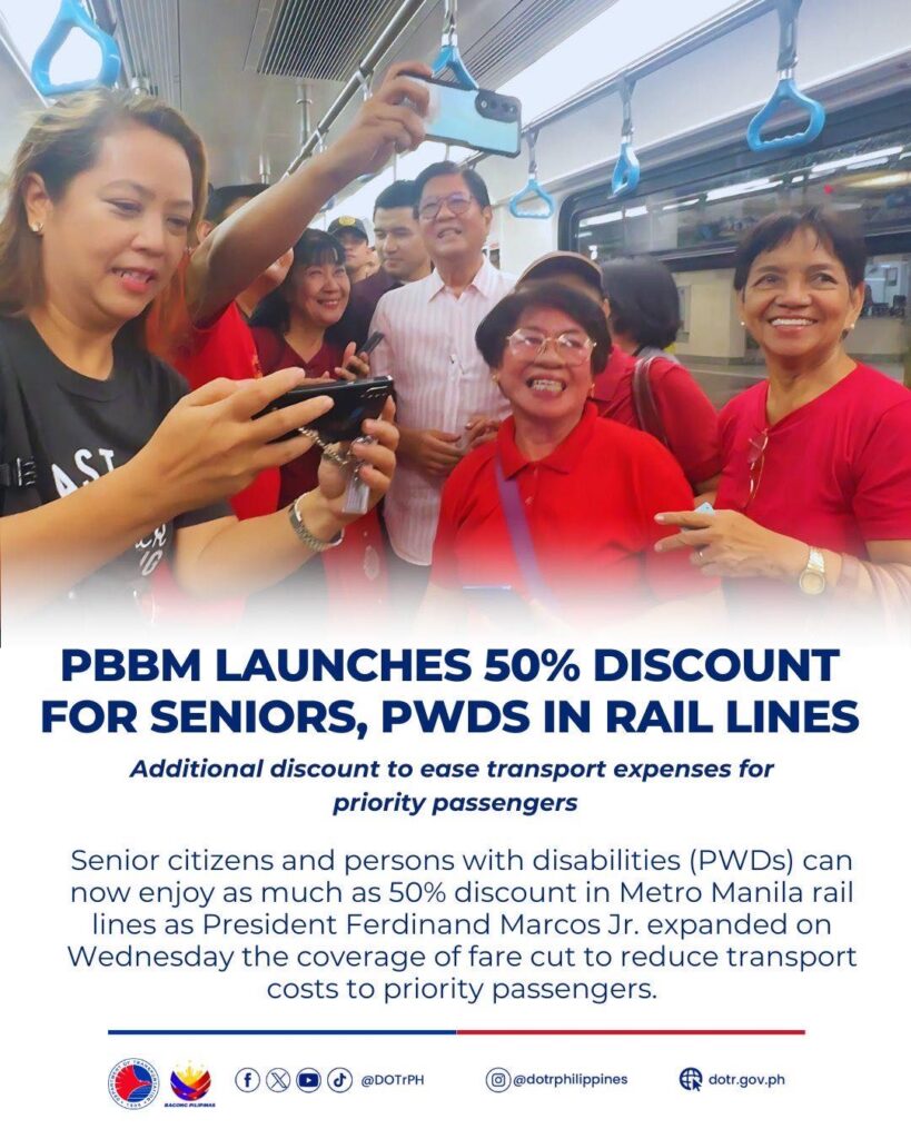 In observance of the 47th National Disability Week from July 17 to 23, President Ferdinand R. Marcos Jr. officially launches the 50-percent train fare discount to senior citizens and persons with disability (PWDs) at the Metro Rail Transit 3 (MRT-3) Santolan-Annapolis Station (Southbound) along EDSA, Quezon City on July 16, 2025. See full details here