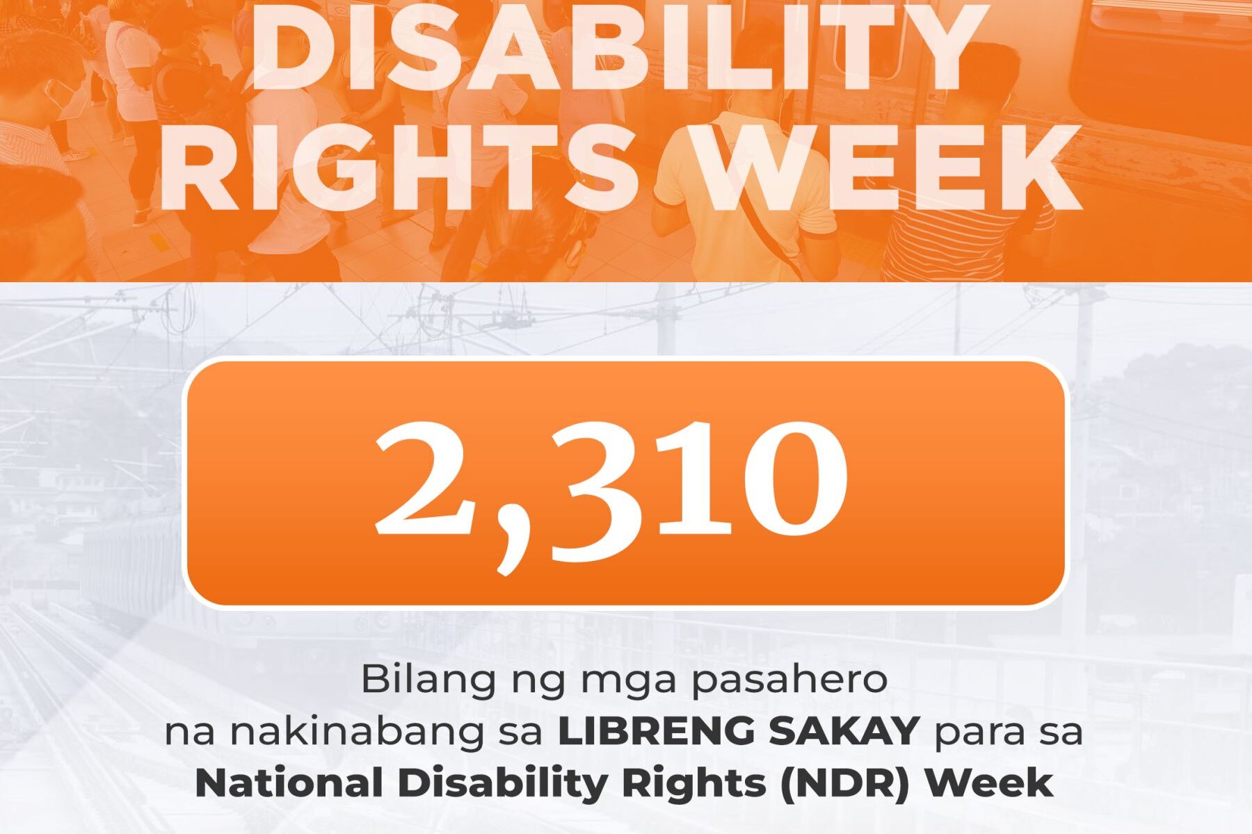 Umabot sa 2,310 ang nakinabang sa libreng sakay na handog ng LRT-2 para sa mga pasaherong may kapansanan.