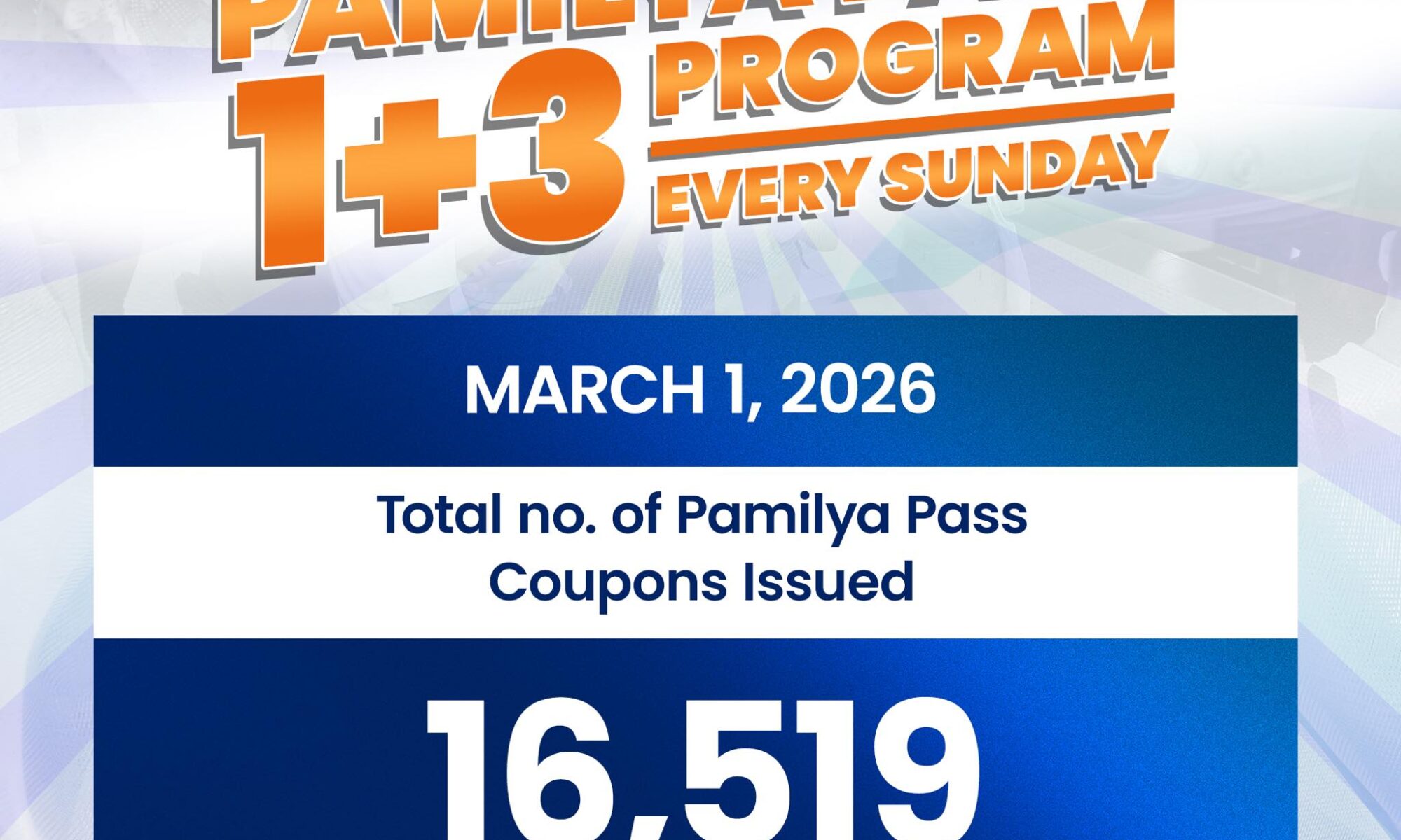Umabot sa 16,519 na Pamilya Pass Coupons ang naipamahagi kahapon, Marso 1, 2026. Sa promo na ito, isang bayad lang apat na agad ang makakasakay! Sulit na sulit para sa pamilya, barkada, at sinumang nais ng mas tipid at masayang bonding time.