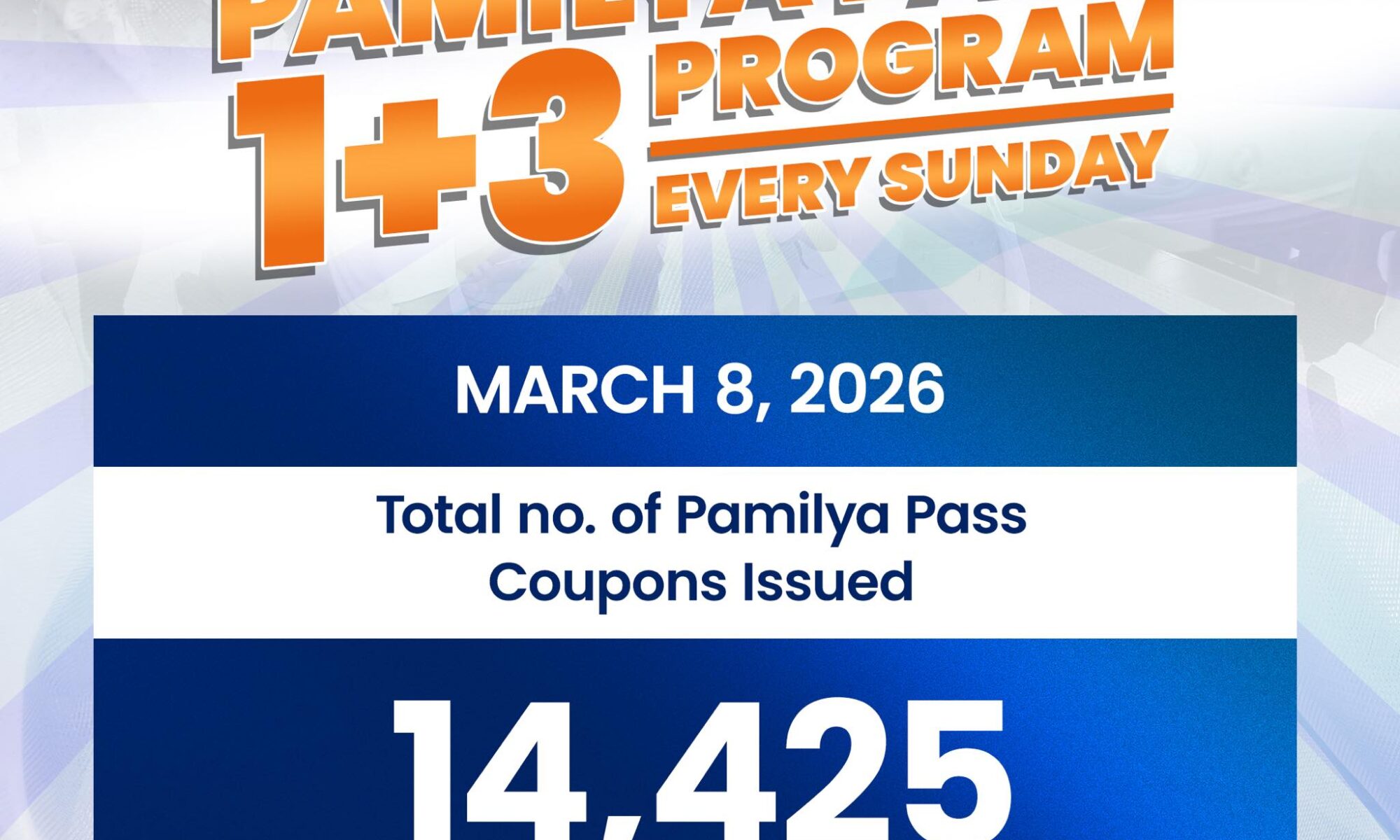 Umabot sa 𝟏𝟒,𝟒𝟐𝟓 na Pamilya Pass Coupons ang naipamahagi kahapon, Marso 8, 2026.