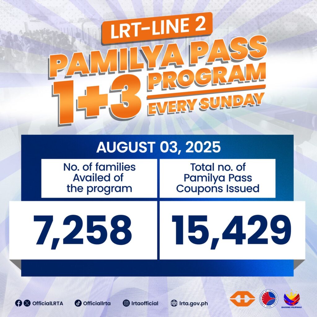 Nasa 7,258 pamilya ang naka-experience ng benepisyo ng Pamilya Pass 1+3 Promo, at umabot sa 15,429 ang kabuuang bilang ng coupons na naipamahagi. see full details here.