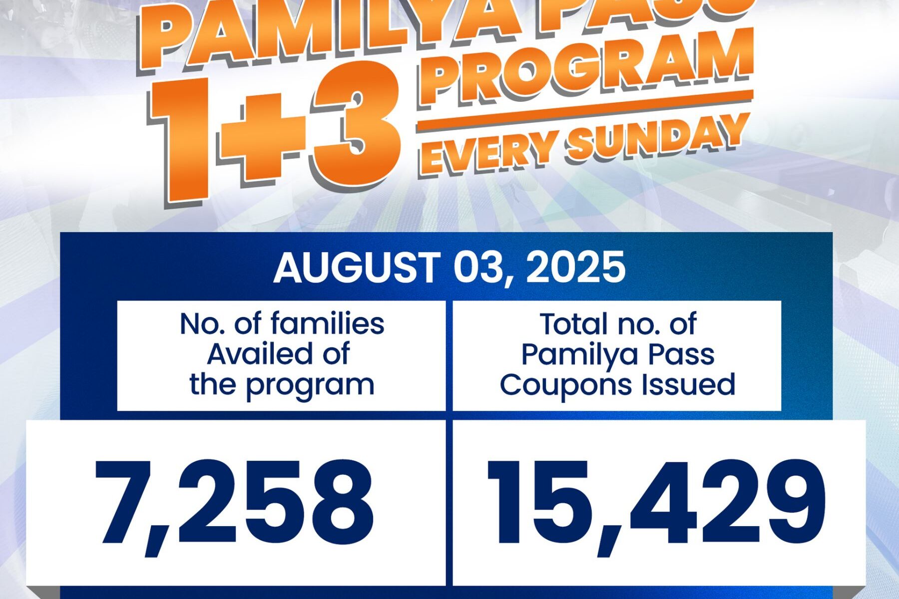 Nasa 7,258 pamilya ang naka-experience ng benepisyo ng Pamilya Pass 1+3 Promo, at umabot sa 15,429 ang kabuuang bilang ng coupons na naipamahagi. see full details here.